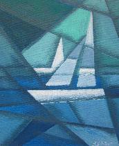 Abstraktes Segeln, 30 x 24 cm, Acryl