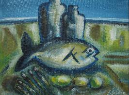 Fischmalzeit, 30 x 24, Acryl