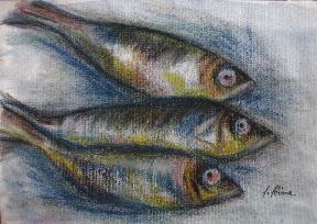 Heringe, 21x30 cm auf Papier, Pastellkreide